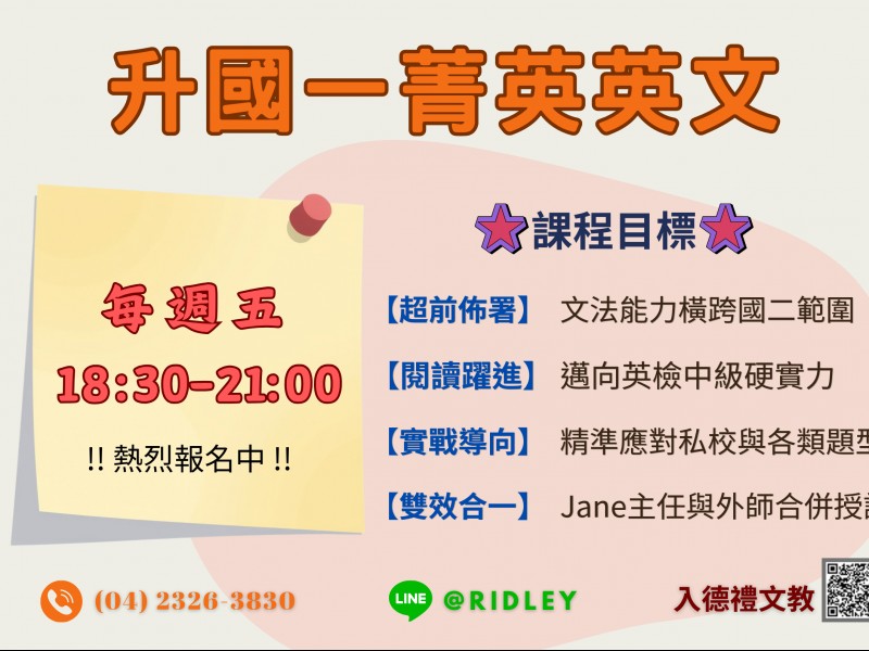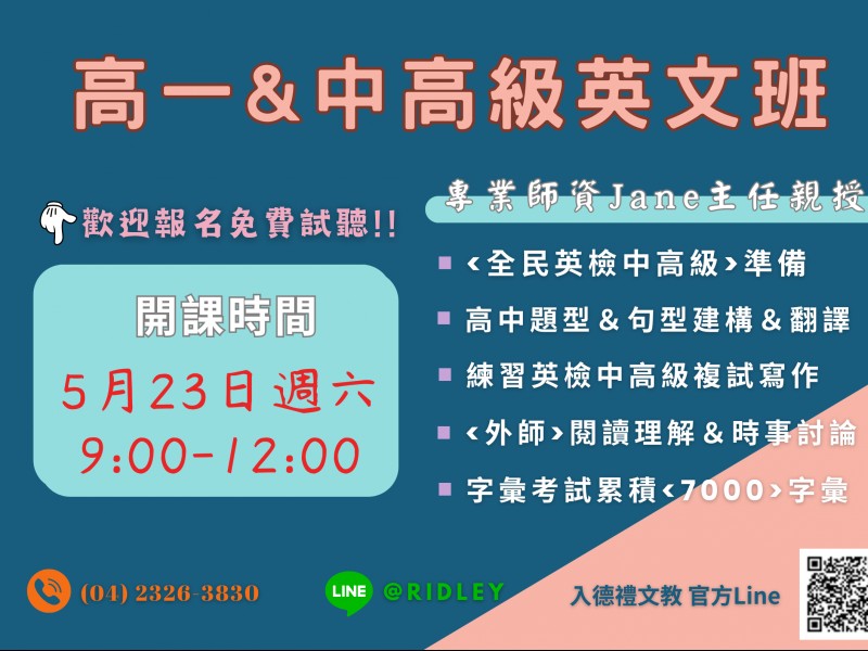 想了解更多台中留學代辦、加拿大留學代辦、德國留學代辦、台中德文課程、台中雅思課程、台中國際交換生、台中國際志工等服務的細節或方案費用?趕快來電洽詢「入德禮文教機構」!電話:(04)2326-3830。