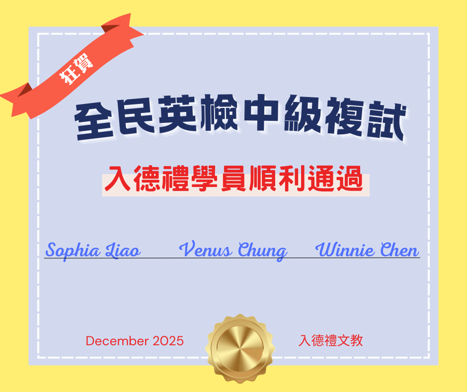 ◆狂賀 入德禮學員全民英檢再創佳績◆