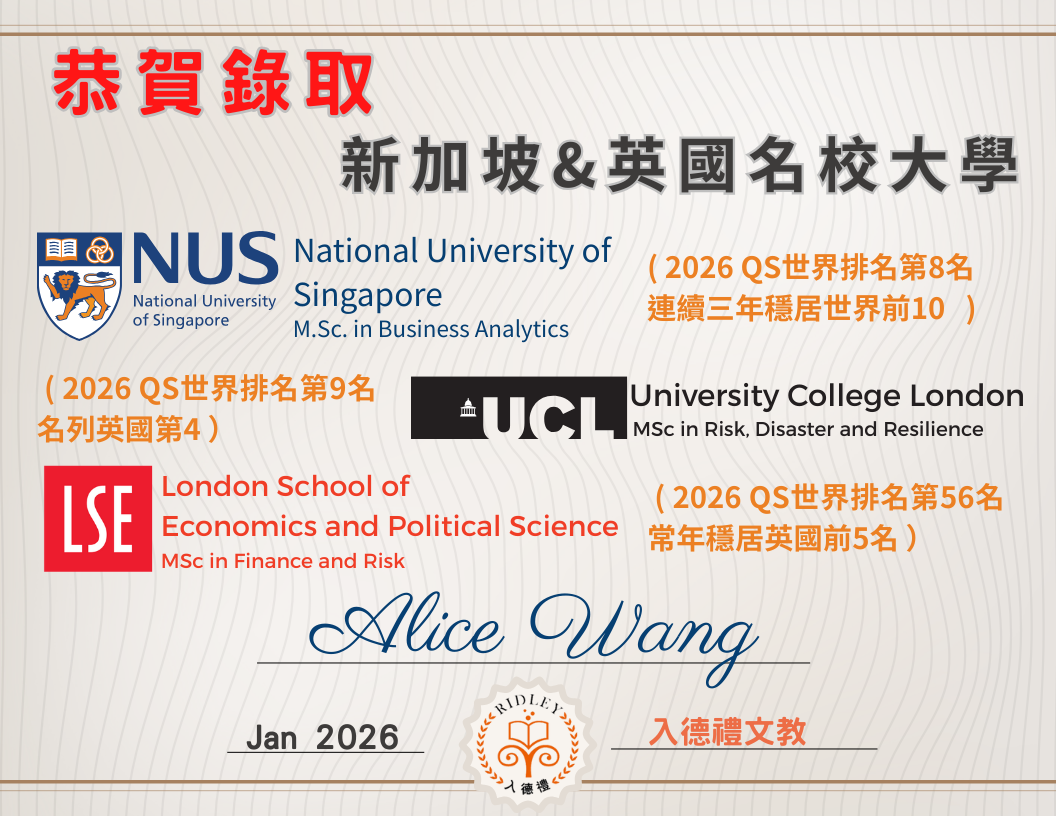 #海外升學 #海外大學申請 #專業代辦 #個製化申請 #Ridley