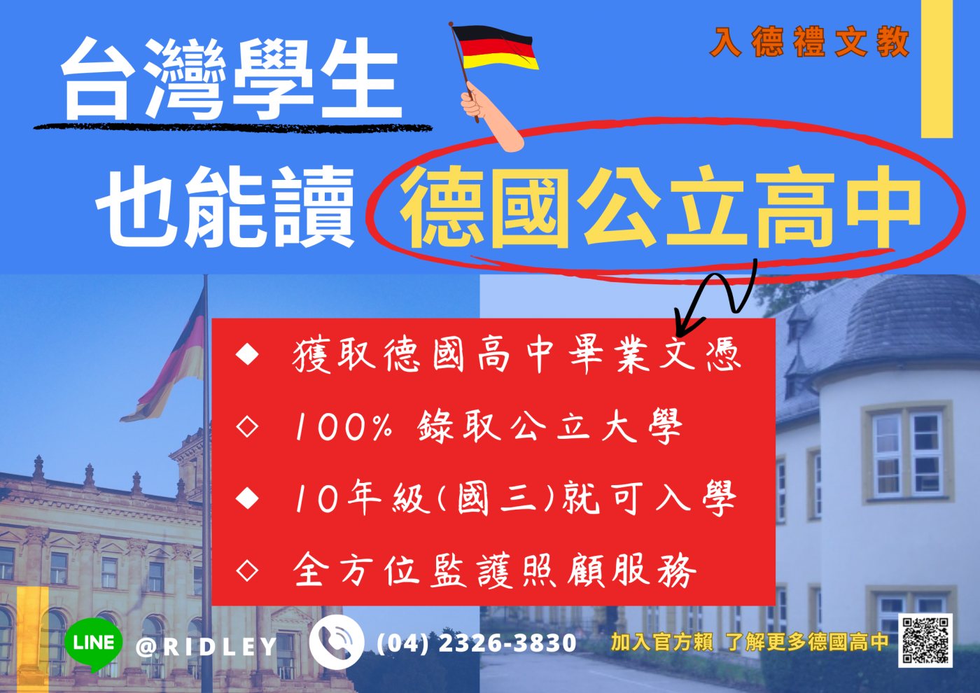 #入德禮文教 #德國高中文憑 #德國公立大學 #大學免學費 #德國公立高中 #全台首推德國公立高中 #Abitur #Gymnasium #Deutschland