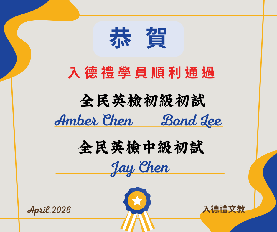 狂賀入德禮學員全民英檢再創佳績‼️